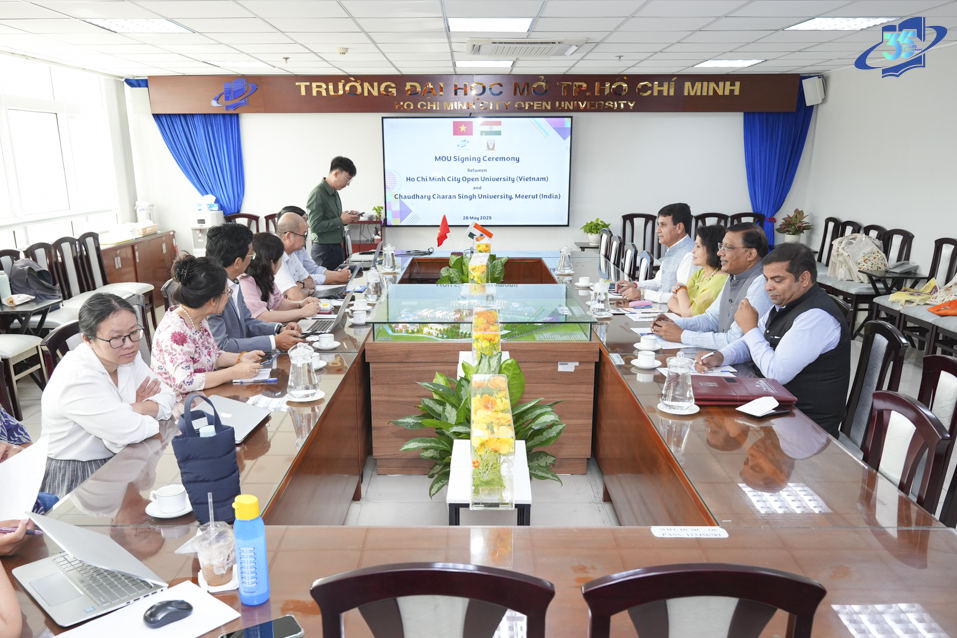 On the morning of May 28, 2025, at Room 704, 35-37 Ho Hao Hon campus, Ho Chi Minh City Open University (HCMCOU) held a signing ceremony for a Memorandum of Understanding (MOU) with Chaudhary Charan Singh University, Meerut (India). The cooperation agreement aims to strengthen academic exchange, scientific research activities, and cultural exchange between the two universities, thereby contributing to the improvement of training quality and the expansion of international study and experience opportunities for the University’s students.