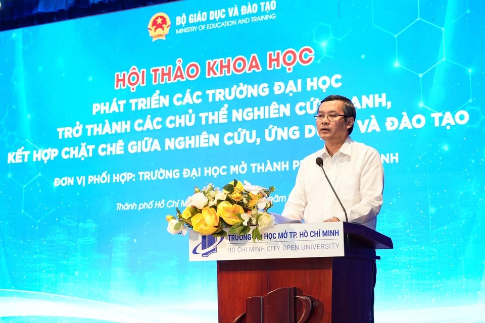 The conference was attended by Assoc. Prof. Dr. Nguyen Van Phuc – Deputy Minister of Education and Training, as well as representatives from the Department of Science, Technology, and Environment; Dr. Senior Lecturer Le Xuan Truong, Vice President of the Ho Chi Minh City Open University. The event also gathered leaders of national higher education institutions, along with numerous scientists, experts, lecturers, and media representatives, demonstrating strong attention to the development of research universities focused on innovation.