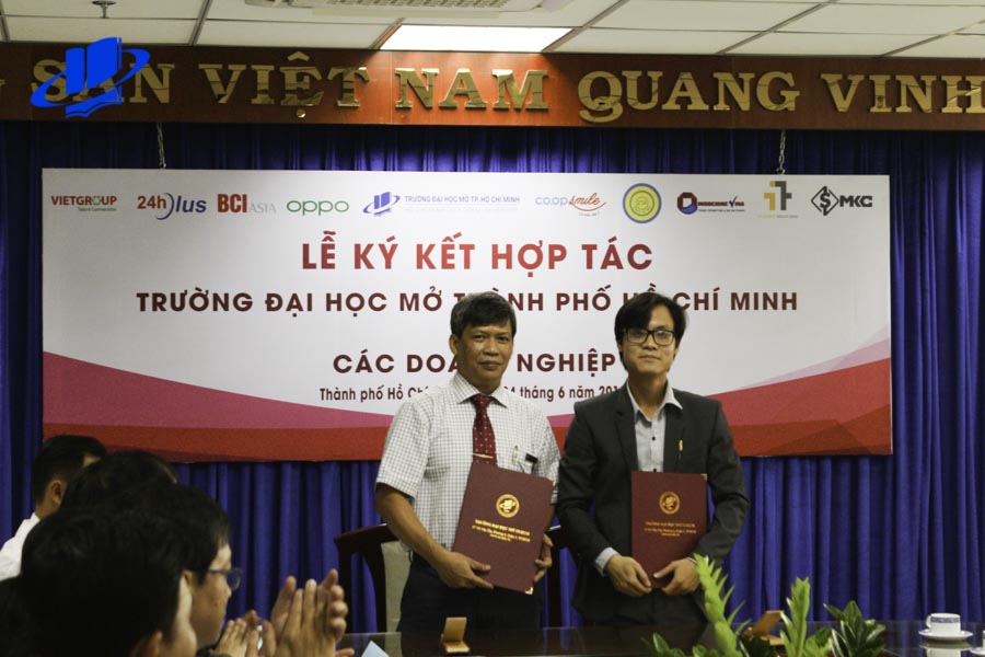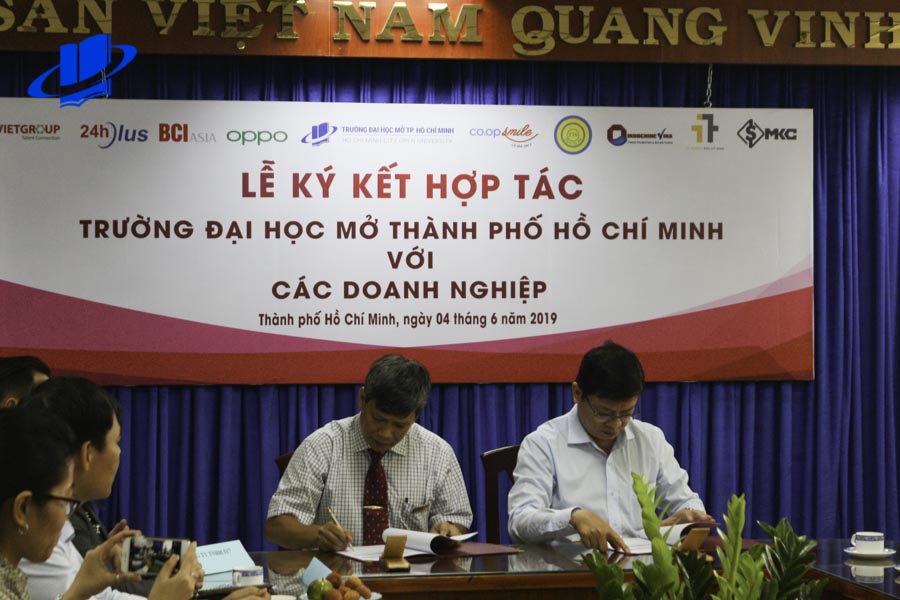 In the strategy of sustainable education development, the role of cohesion between the school and organizations and enterprises is always a top concern of the University to serve the purpose of application-oriented training to provide students with practical experiences. In order to establish a good cooperative relationship, along with the goal of developing and exploiting the strengths of the parties, on June 4, 2019, HCMCOU held a student support cooperation signing ceremony between HCMCOU and enterprises.